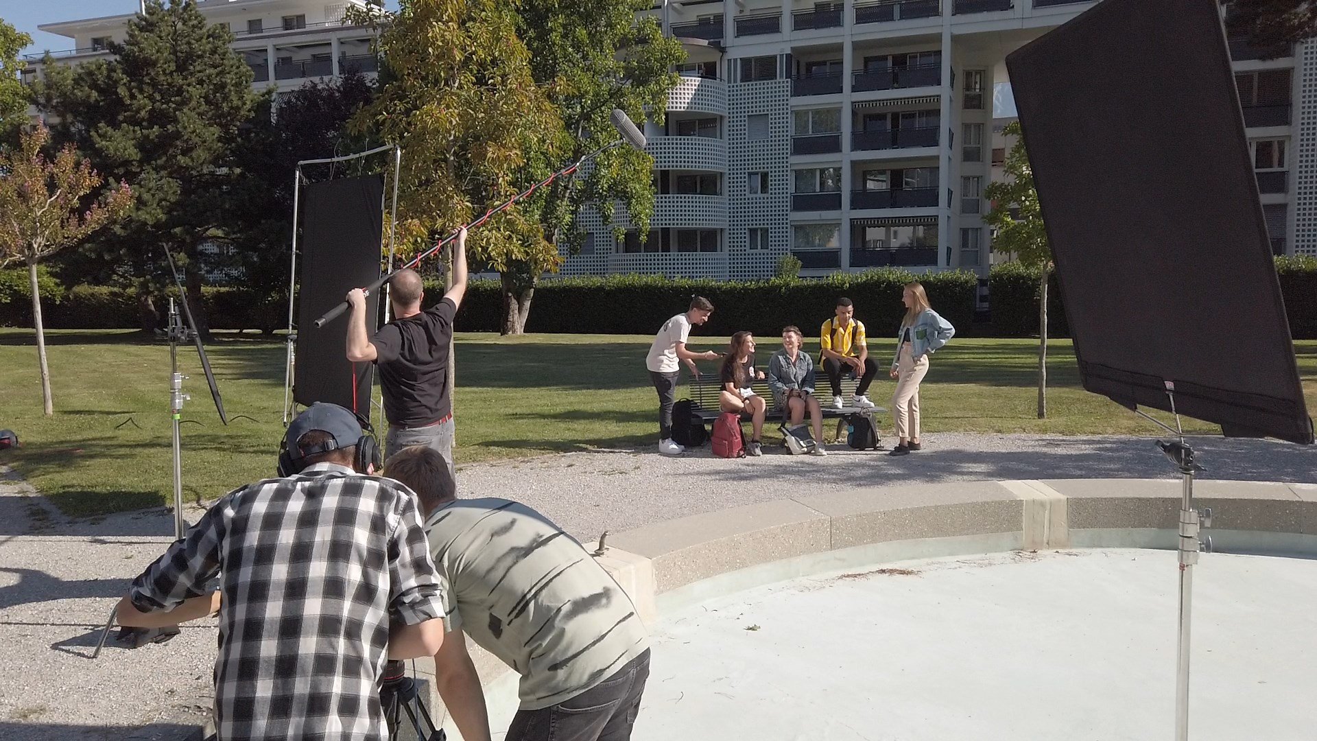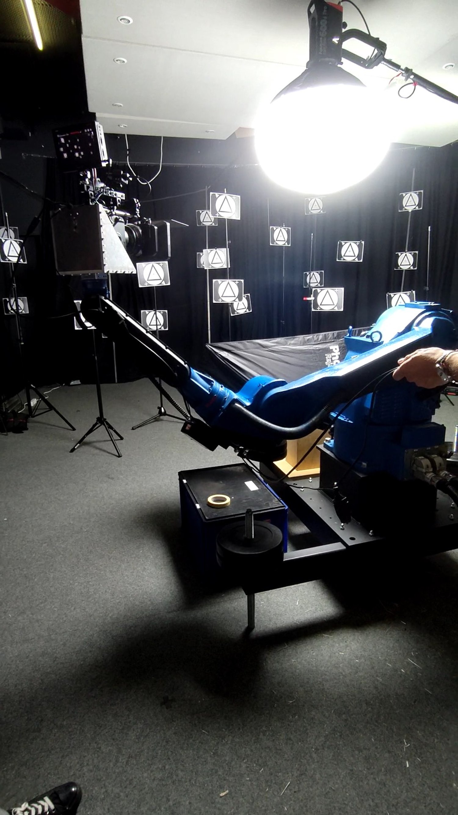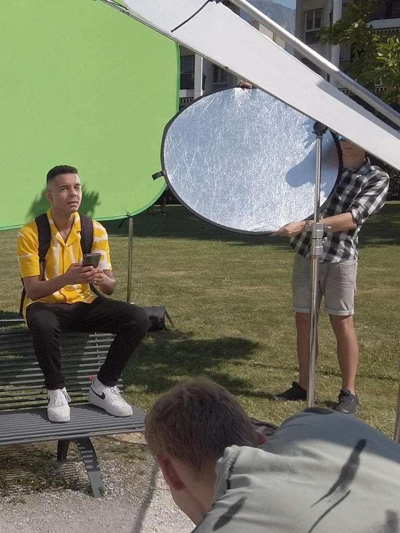 Dans notre concept, le site internet est matérialisé en un univers dans lequel l’utilisateur est plongé. Comme cette approche demandait un important travail de 3D, une partie du tournage a nécessité un fond vert et l’utilisation de notre robot.